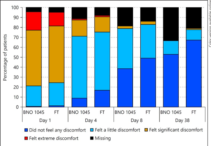 Figure 3 : Inconfort avec Canephron (BNO 1045) et Fosfomycine trometamol (FT) (25)
